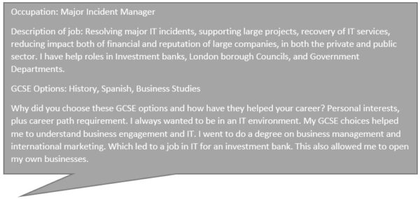 We asked our parents to share details about their GCSE subject choice and careers. Thank you to all parents who contributed.