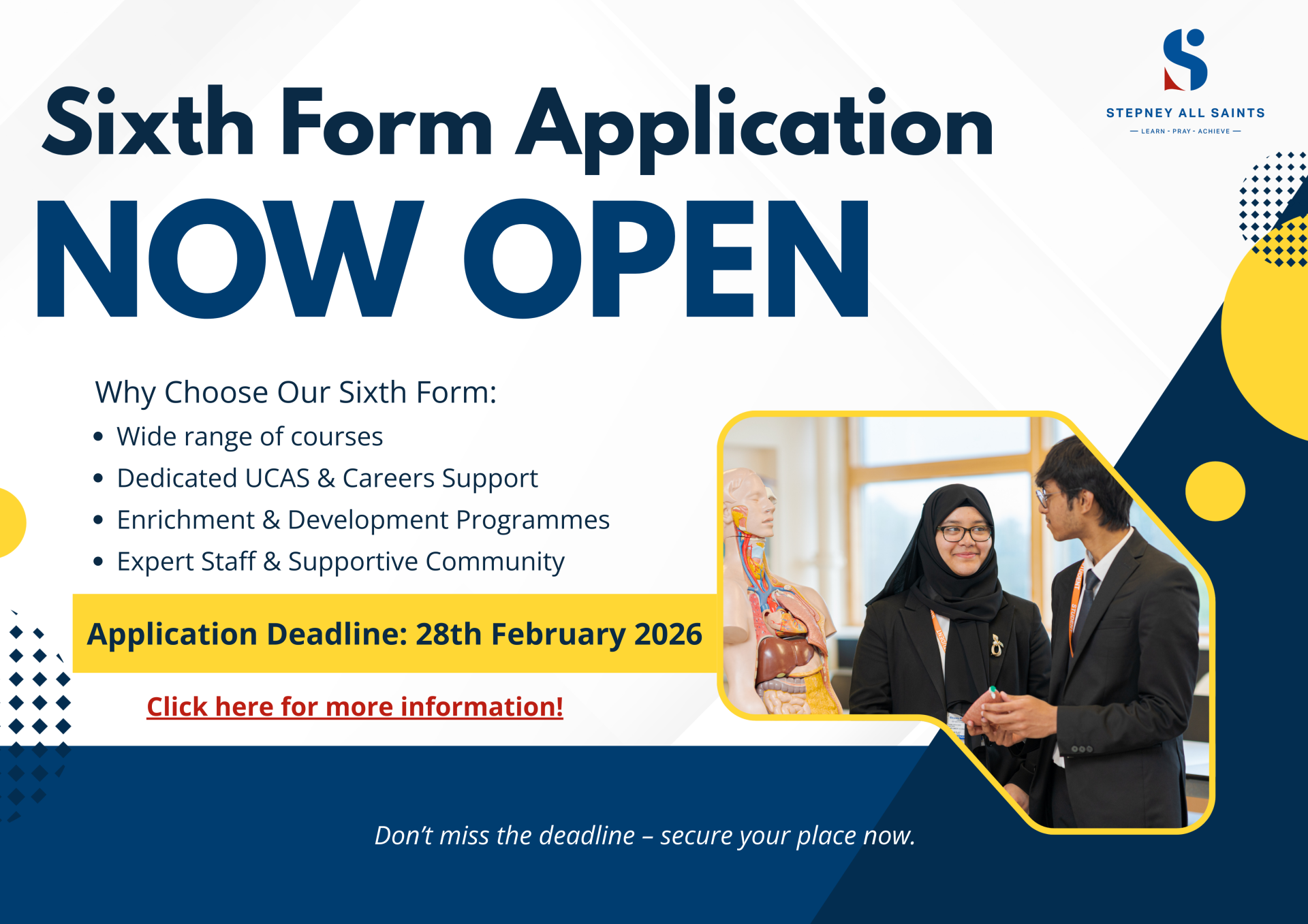 #SixthForm #StepneyAllSaints #SixthFormLife #ApplyNow #FutureStartsHere #Year11 #GCSEs #Post16 #LondonSchools #SixthFormApplications #Education